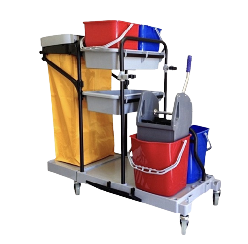 Janitor trolley, wringer press mop, window washer, hingga dustbin roda kapasitas besar.